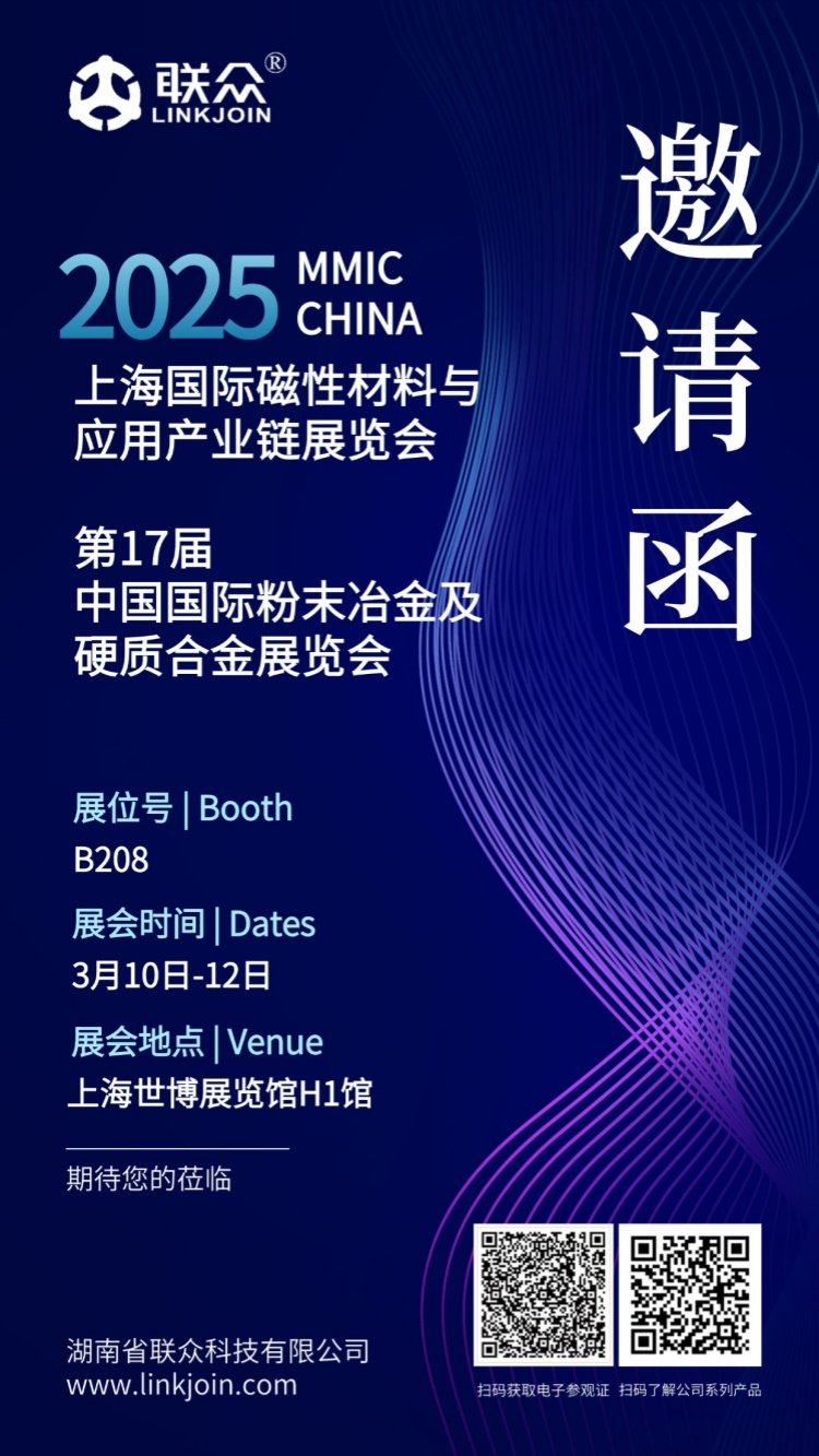 蛇年伊始 ,湖南省聯衆科技有限公司誠邀您參加2025年3月10日至12日上海國際磁性材料與應用産業鏈展覽會暨第17屆中國國際粉末冶金硬質合金展覽會,我們在上海世博展覽館H1館,展位号B208等您!歡迎前來洽談交流,共探行業新機遇!